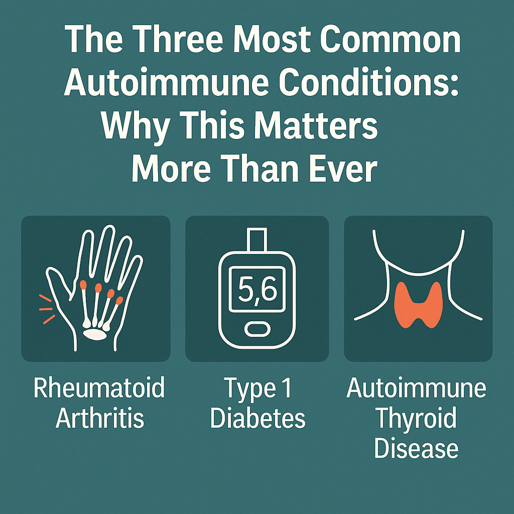 Autoimmunity isn’t a niche issue anymore. It’s mainstream — and the data backs it up. A recent population-based study out of the UK looked at 22 million individuals and found clear trends: the most common autoimmune conditions worldwide are rheumatoid arthritis, type 1 diabetes, and autoimmune thyroid diseases like Hashimoto’s thyroiditis and Graves’ disease [1–4].